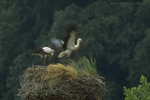 schaute sie hin und wieder zum Horst und beobachtete das Geschehen dort. Die Jungstörche haben die Zeit mit dem Training der
