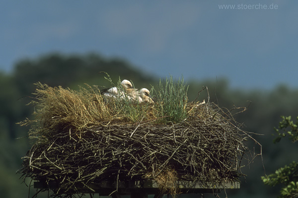 werden. Plötzlich schauten alle drei am Horst anwesenden Störche in den Himmel, und die Jungstörche legten sich flach hin. Der