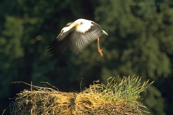 Übernachtung kehren die Jungen zum Horst zurück und die Altvögel halten sich meist auf den Dächern in der Nähe zum Horst auf. Nur
