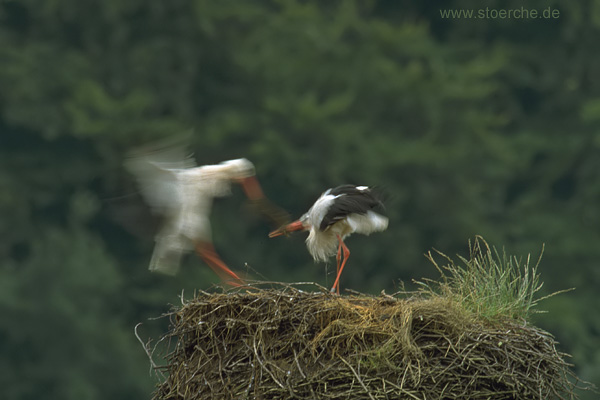 Situation beruhigt hatte, kam ein Fremdstorch vorbei, und die beiden Horstbesitzer kehrten zum Horst zurück. Ein kurzer