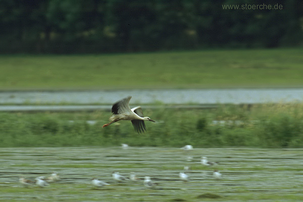 Aufenthalt, denn nachdem der fremde Storch abgedreht war, flogen beide Altstörche wieder zu ihren Jungen auf die Felder